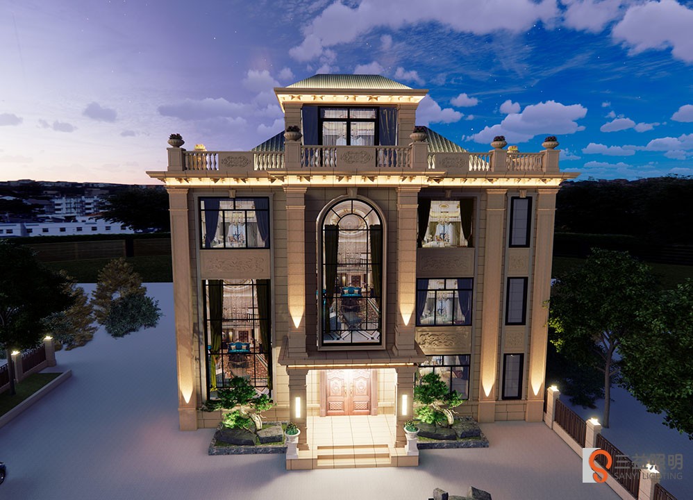益阳市资阳区新桥河镇田总别墅灯光设计项目别墅外墙灯光设计,别墅 灯光91免费视频下载设计,农村自建房灯光工程,跟据墙体外观特色,使用灯光勾勒出别墅造型,使乡村别墅在夜间也能绽···